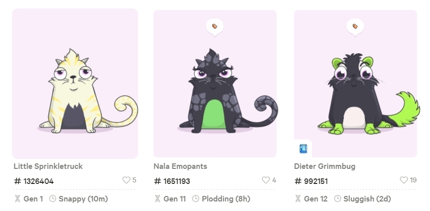 Котиков мы упомянули неспроста, и не только потому, что все любят котиков. Всё дело в том, что именно с котиков и началась популяризация NFT-токенов как таковых. Конкретно дело было в игре CryptoKitties, в которой можно было разводить виртуальных представителей семейства кошачьих. Эта игра стала очень популярной, а суммы реальных инвестиций в виртуальных питомцев превышали 100 тысяч долларов за каждого (даже реальные котики столько не стоят). И более того, игра превосходно существует до сих пор и так же бойко продаёт несуществующих в реальном мире котиков.