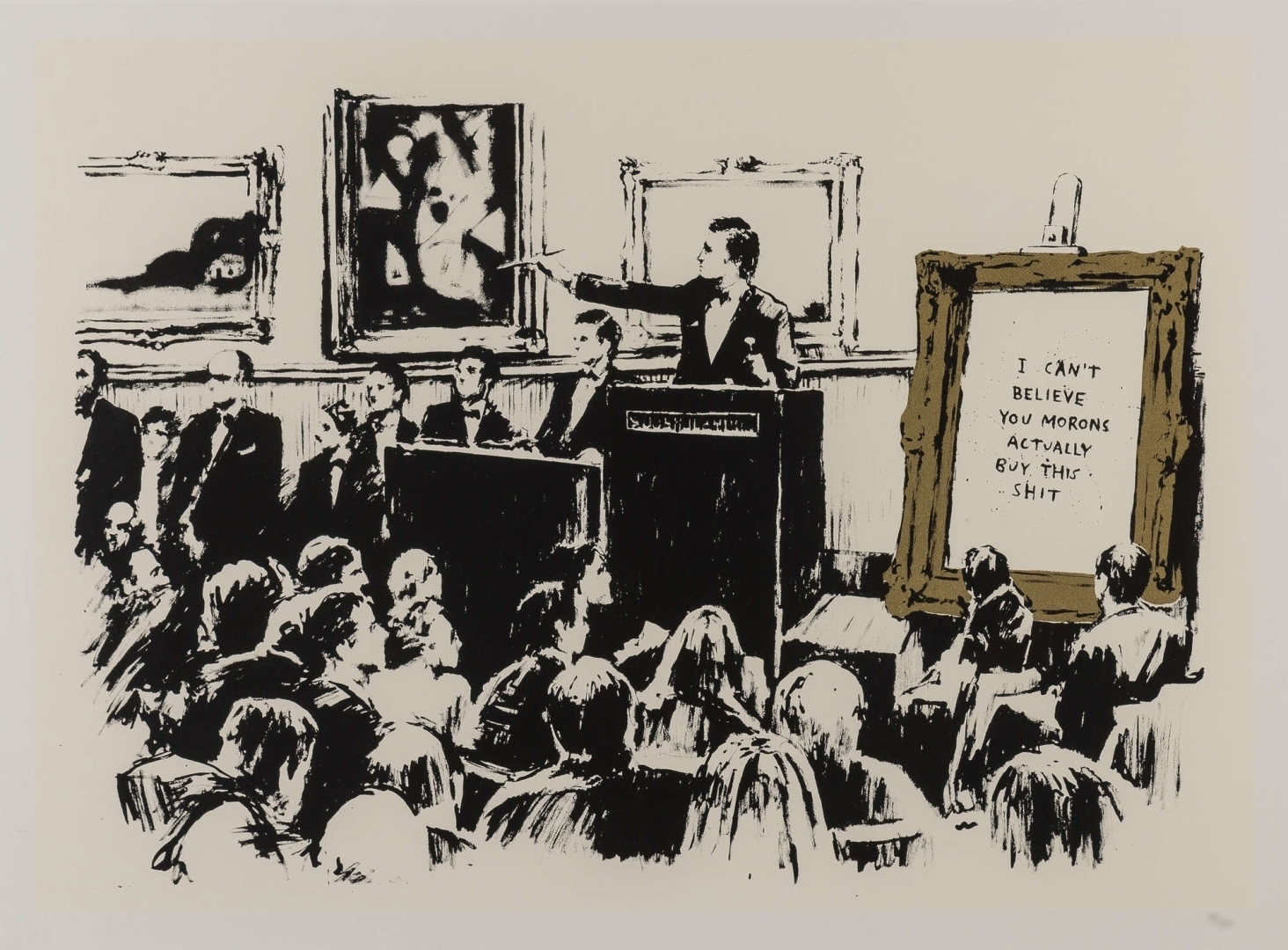 Где же можно увидеть «живое» применение технологии, и даже в какой-то степени виртуально «пощупать» цифровые товары? Самым известным и ярким примером полного перевода NFT-произведения цифрового искусства из физического состояния в виртуальное является сжигание работы художника Бэнкси под названием «Morons (White)». Работу токенизировала компания Injective Protocol, картина была куплена у Taglialatella Gallery почти за 100 тысяч долларов (более 7 миллионов рублей), и теперь ее физического воплощения не существует, картина доступна только в виде невзаимозаменяемого NFT-токена.