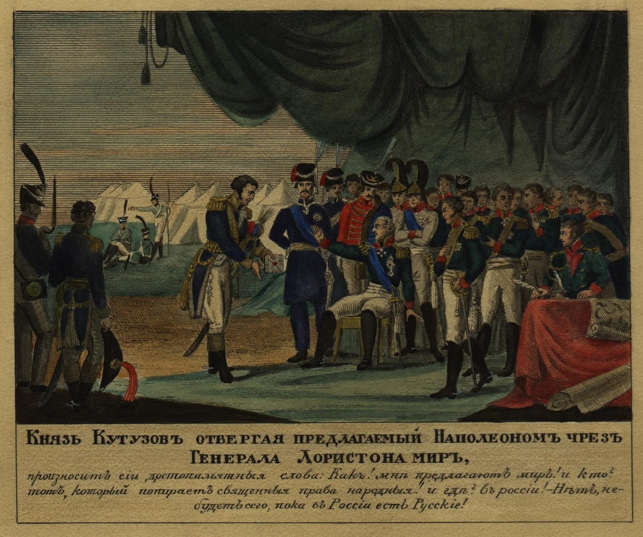 Посол Наполеона Лористон в Тарутинском лагере. Рис.1813 г.