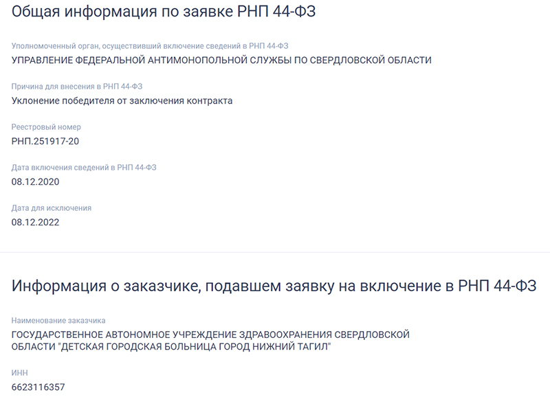 Про фирму "Климовск ДЕЗ" ("Областной центр дезинсекции") известно, что она работает на этом рынке десять лет, дважды включалась в реестр недобросовестных поставщиков – оба раза по причине "уклонения от заключения контракта": в декабре 2020-го – по заявке Детской областной больницы из Нижнего Тагила (дата исключения из реестра – декабрь 2022-го), в мае 2020-го – по заявке ГБОУ Москвы "Автомобильные дороги ЦАО" (дата исключения – та же).