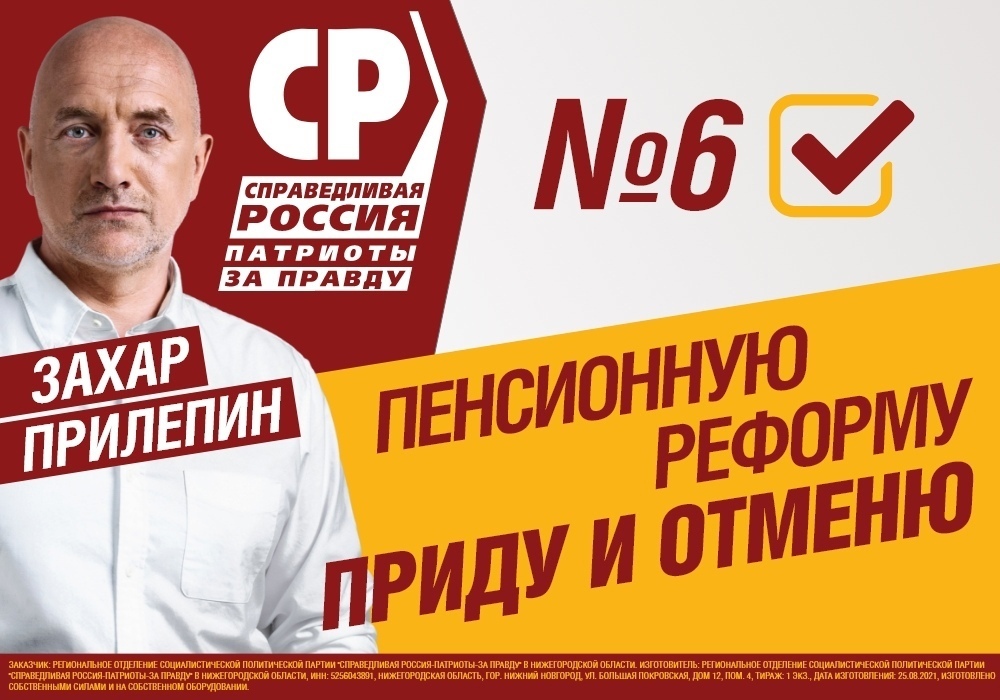 Сам Прилепин баллотируется в Госдуму от Нижегородской области. Связывает его с Нижним Новгородом не так много — в 1999 году он закончил филфак Нижегородского университета. Зато весь город, да и область усеяны предвыборными лозунгами от Захара (а в реальности Евгения Николаевича) Прилепина. Наверное, подразумеваться за лозунгами должна новополучившаяся партия "Справедливая Россия - Патриоты - За правду". Но это уж их внутреннее дело.