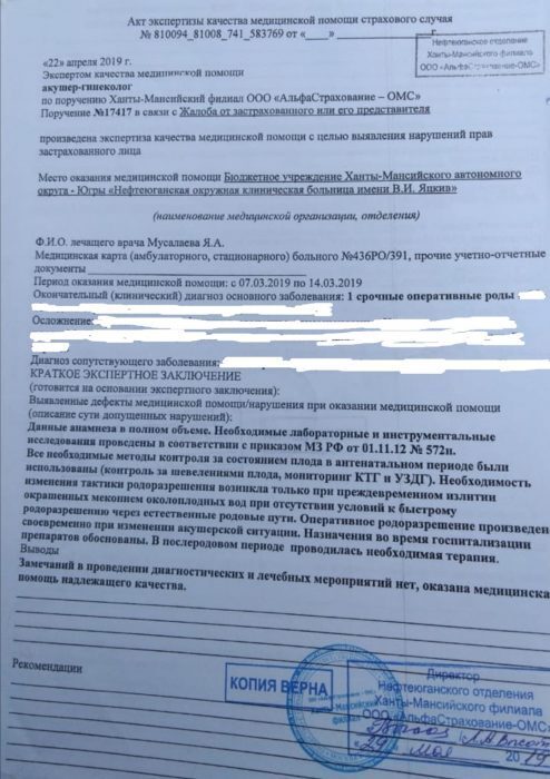 Молодой отец решил не сдаваться и написал заявления в полицию и следственный комитет. Страхования компания «ООО Альфа-страхование — ОМС» провела экспертизу, согласно которой замечаний в проведении диагностических и лечебных мероприятий не выявила. В возбуждении уголовного дела отказали.