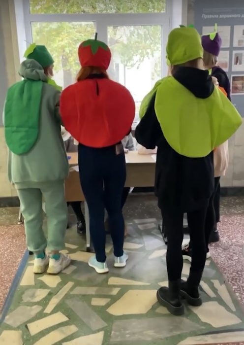 В Екатеринбурге на избирательный участок в центре города пришли голосовать избиратели в костюме овощей.