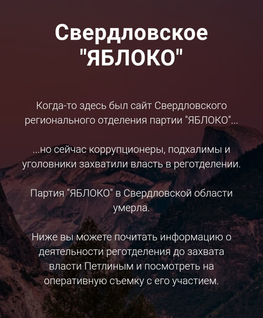 Заставка сайта Свердловской организации партии "Яблоко". Скриншот