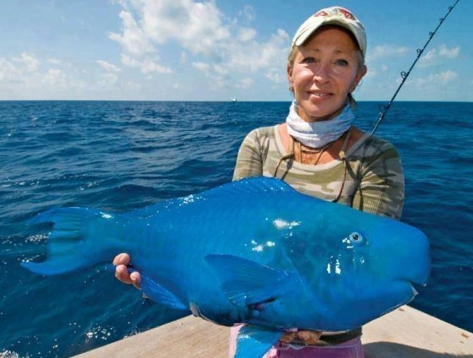 Рыба синий окунь или синий попугай встречается на мелководных рифах в тропических и субтропических районах Атлантического океана и Карибского моря.
