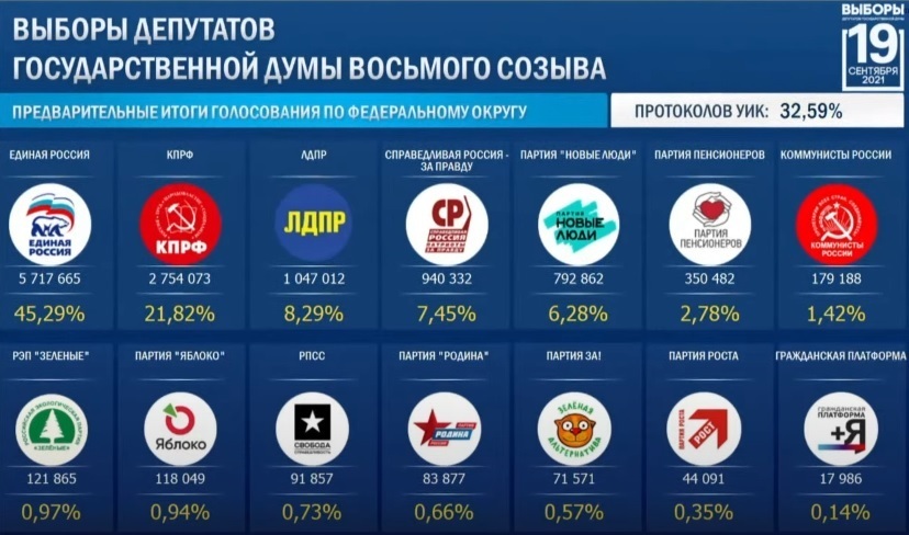 Предварительные итоги голосования на выборах в Госдуму 2021 на сейчас - последняя информация