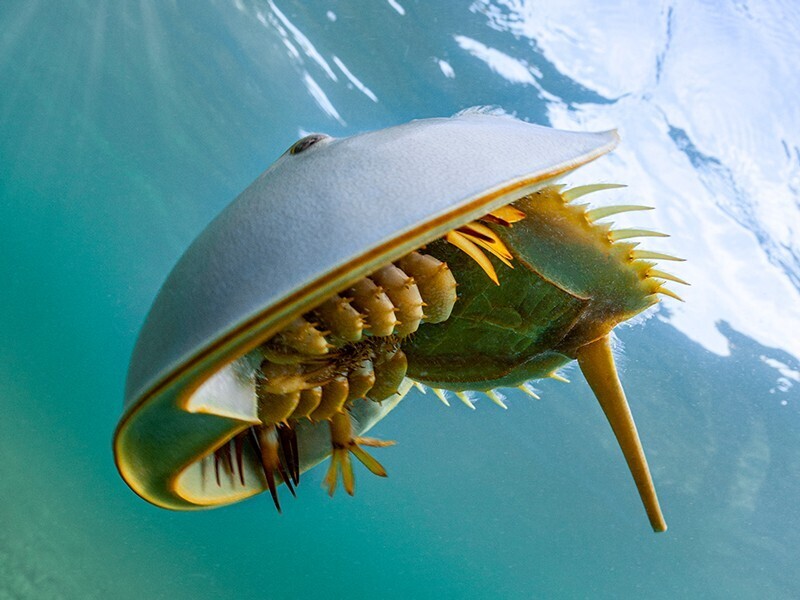 Кровь подковообразных крабов голубого цвета: их транспортный кислородный белок основан на меди. Предоставлено: Гетти.