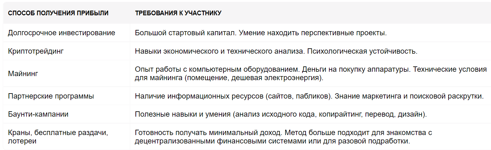 Получить доход можно и без начального капитала. Для этого обычно применяются криптовалютные краны, лотереи и аирдропы. Но потенциальная прибыль от работы без вложений намного ниже дохода от инвестиций. Исключение составляют гонорары специалистов: программистов, маркетологов, дизайнеров, копирайтеров.
