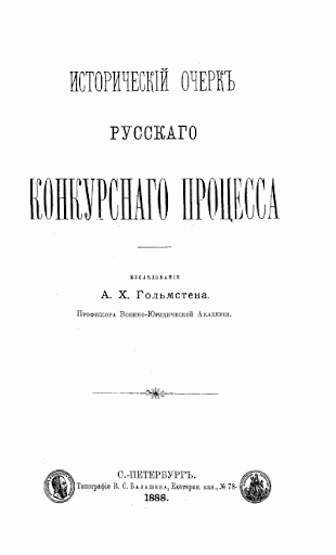 После 1832 г. были изданы следующие акты, касающиеся конкурсного права: Положение об утверждении временной Комиссии по делам об имениях и долгах Принцев Александра и Эрнеста Виртембергских от 5 сентября 1839 г., Положение о содержании под стражею за счет казны несостоятельных должников, признаваемых в злонамеренном банкротстве от 13 ноября 1839 г., Положение о предоставлении Сенату права приводить в исполнение определения свои о переводе торгов на продажу имений из губерний в столицу от 12 декабря 1839 г., мнение Государственного Совета «О дополнении правил относительно устройства конкурсов» от 29 июня 1839 г., Уложение о наказаниях уголовных и исправительных от 15 августа 1845 г., Указ о порядке удовлетворения долгов несостоятельных купцов – золотопромышленников от 6 марта 1858 г., Правила о порядке производства дел о несостоятельности как торговой, так и неторговой в новых судебных установлениях 1868 г., Закон об отмене личного задержания неисправных должников 1879 г., Правила о порядке ликвидации дел частных и общественных установлений краткосрочного кредита от 22 июня 1884 г.