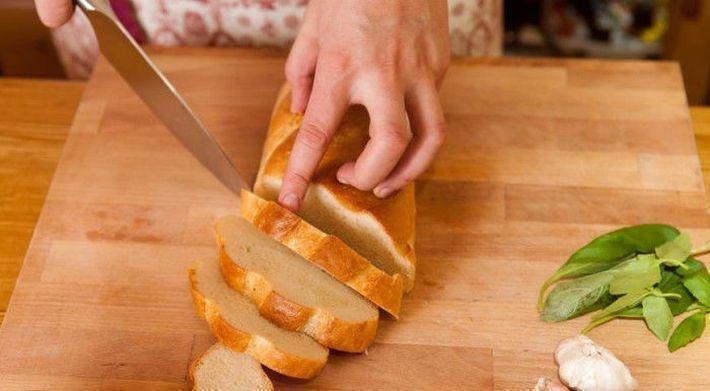 Сделать трапезу не просто перекусом, а настоящим перерывом с вкусной едой и красивой сервировкой помогают, казалось бы, не особо значимые детали. Например такие, как нарезка хлеба. Ведь если он будет нарезан тонкими, аккуратными и красивыми кусочками, есть будет намного приятнее, да и калорий меньше при видимом большом количестве. Однако с тонкими ломтиками часто возникают проблемы — хлеб крошится и ломается. Чтобы избежать этой проблемы, нужно использовать простой прием: окунуть нож в горячую воду, быстро его протереть и начинать резать хлеб.