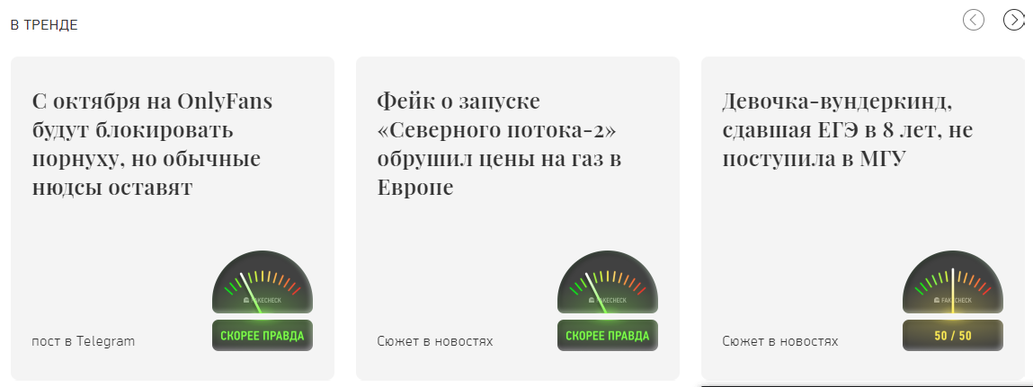 Третья гипотеза предполагала интерес к сервису со стороны обычных людей. Сегодня мы видим, что он есть: к нам приходит много запросов на проверку. Причем не только через форму на сайте, но и в соцсетях. Главное условие для того, чтобы мы взялись за такую проверку, — это общественная значимость или большое количество просьб от читателей. При этом в социальных сетях, как правило, воспринимают нас как медиа. Мы же в большей степени ориентированы на то, чтобы прийти к автоматизации проверки информации, что в перспективе позволит улучшить качество контента крупным заказчикам.
