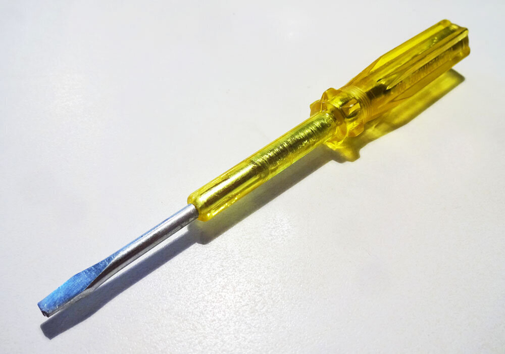 Чтобы обнаружить, что в доме вообще нет инструмента. Даже самого простого и необходимого. Пришлось идти в соседний магазин, где мы долго и мучительно выбирали самую простую индикаторную отвёртку. Из двух. Одна стоила 50 рублей, другая 150.