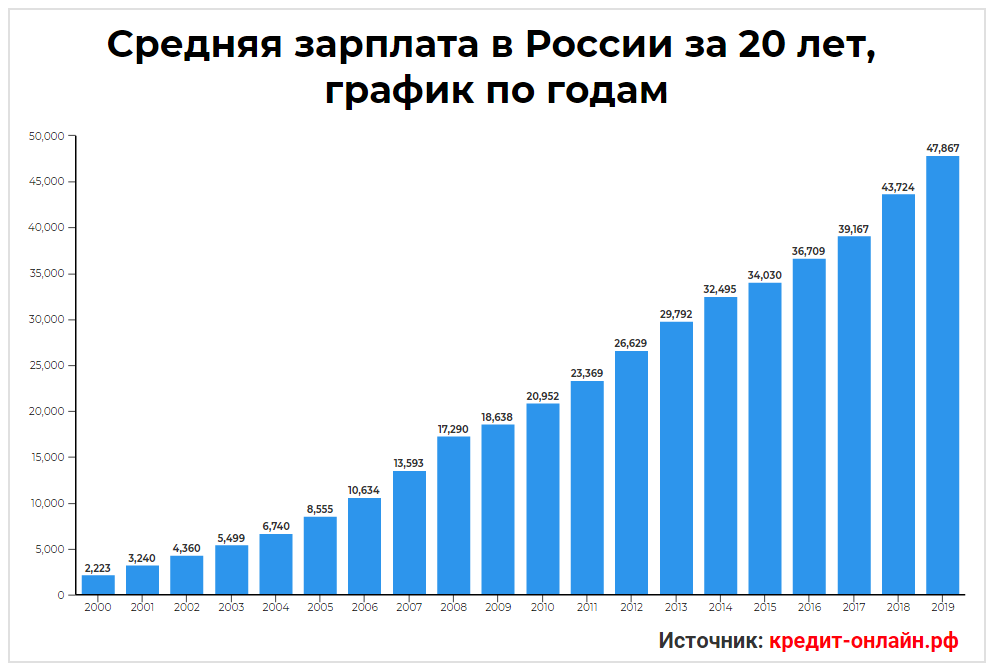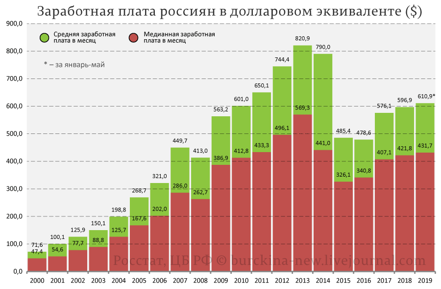 Средняя заработная плата в долларовом эквиваленте выросла примерно в 10 раз