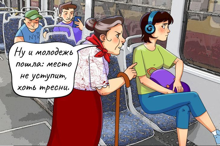 Бабушка, которой нужно сесть именно на то место, которое вы себе уже нагрели