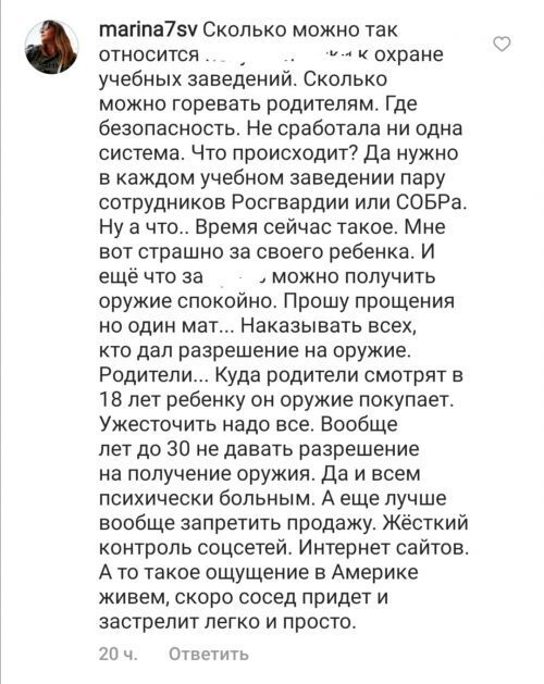В целом, многие возлагали ответственность за случившееся на плохую организацию работы психологической службы в учебных заведениях. Психологов либо вовсе нет, либо не хватает. В любом случае почти никто из студентов реально не посещает этих специалистов, которые могли бы выявить проблему на ранней стадии.