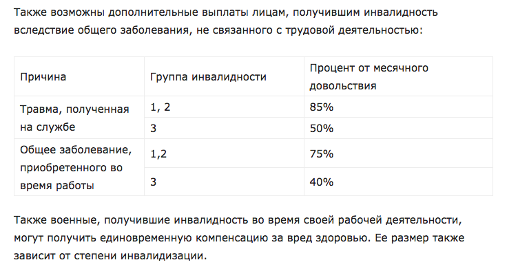 Важное условие для получение такой надбавки – наличие группы инвалидности, обретенной вследствие получения травмы во время исполнения прямых должных обязанностей. Размер надбавки будет зависеть от степени тяжести поражений, которую постановят врачи специальной комиссии.