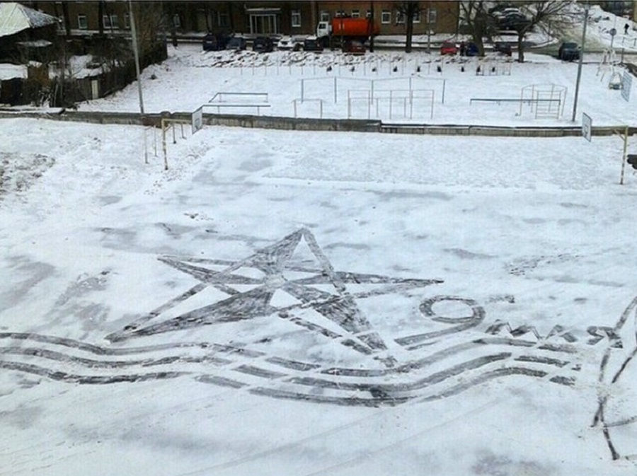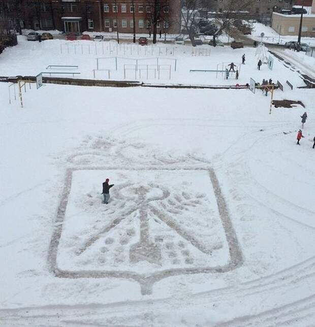 Сегодня речь пойдет о простом дворнике из Ижевска. Вы вправе спросить, что может быть интересного в этой работе? Еще как может! Нашего героя зовут - Семен Бухарин, ему 53 года. В зимнее время на территории школы, где он работает, с помощью лопаты и метлы он создает потрясающие картины! Школьникам это очень нравится, многие шедевры Семена выкладывают в интернет. Руководство школы заметив талант у дворника, пригласило его помогать разрисовывать стены к праздникам. В общем работы хватает.