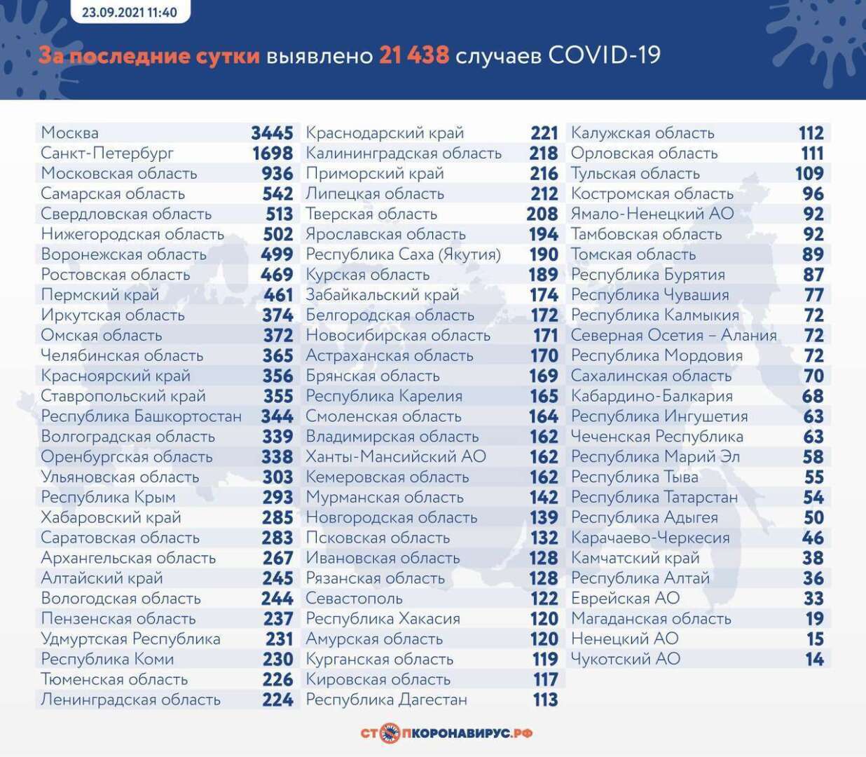 Статистика коронавируса на сегодня, 24 сентября 2021 в России, Москве, СПб: сколько заболело и умерло?
