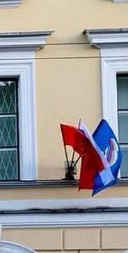 Флаги Санкт-Петербурга и Единой России. В компьютере есть опция экранной лупы.