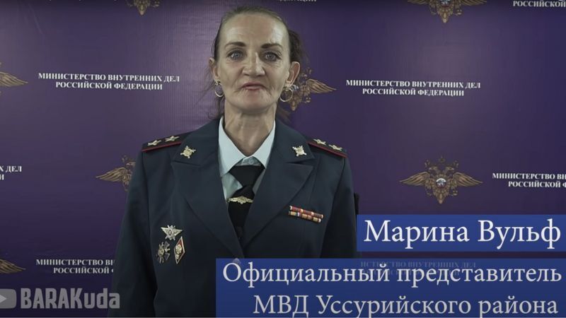 В ролике "Виталий Наливкин предотвратил теракт" от 22 сентября, опубликованном на канале BARAKuda в YouTube, актриса от имени "официального представителя Уссурийского района" Марины Вольф рассказала о найденной на остановке сумке с морковью. Ролик напоминает пресс-релизы МВД, на которых выступает официальный представитель ведомства Ирина Волк.