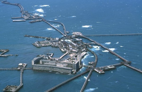 После всё завертелось. Были обнаружены огромные залежи нефти, было построено более 200 платформ, более 300 километров дорог и мостов, соединяющих платформы, по которым курсировали автоцистеры. Благодаря этому месторождению в мире началось массовое строительство нефтяных танкеров. Были построены многоэтажные дома для 5000 рабочих, прямо в море. Рабочие жили неделями на месторождении. Путешествие же домой на материк могло занять от шести до двенадцати часов. На острове был свой завод напитков, футбольное поле, библиотека, пекарня, прачечная, 300-местный кинотеатр, баня, сад, огород и даже парки, для которых почва привозилась с материка.