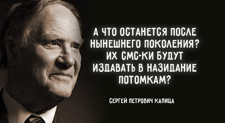 Слова из заголовка были сказаны Сергеем Петровичем еще в 2009 году, в одном из интервью газете АИФ. Тема духовной, культурной и нравственной деградации поколений в России была ему особенно близка. Сын лауреата Нобелевской премии Петра Леонидовича Капицы, советский и российский учёный-физик, просветитель Сергей Петрович Капица для большинства из нас не нуждается в представлении.