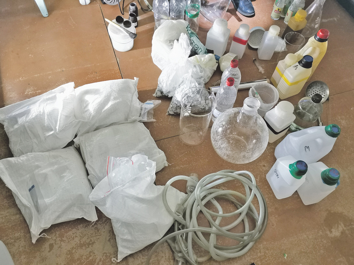 Обыск длится почти пять часов. Кроме специальной посуды, различных веществ и оборудования, изъяты технические устройства, посредством которых драгдилер поддерживал связь с клиентами и поставщиками прекурсоров. Ранее в ходе досмотра вещей у него обнаружили почти 300 грамммов уже готового амфетамина.