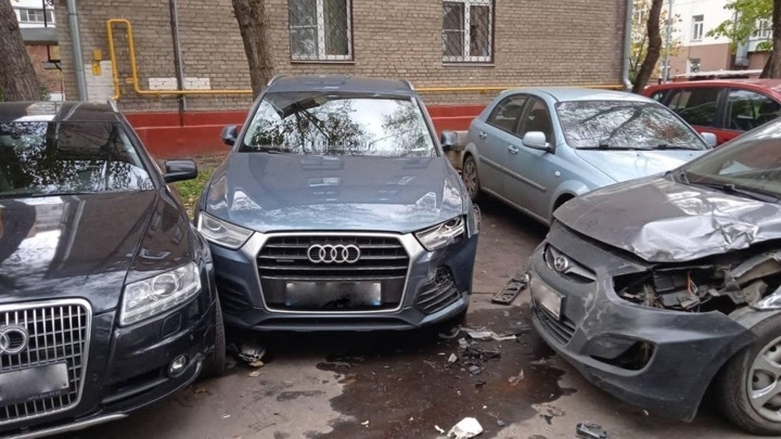 Находившаяся в состоянии опьянения, не имеющая водительских прав девушка за рулем автомобиля Hyundai Solaris повредила семь машин, припаркованных во дворе дома в районе Текстильщики.