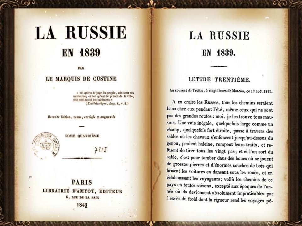 Когда я читала биографию царя Николая I, сначала я тоже думала, что побеждённые французы написали такое из зависти, но прочитав произведение Кюстина полностью, у меня сложилось почти такое же представление, особенно на те времена. Да и сейчас Россия во многом отстает от западных стран. А Николай I оказался ещё тот лжец, хотя и лучше его бабки Екатерины.