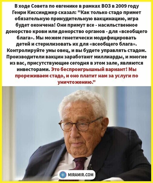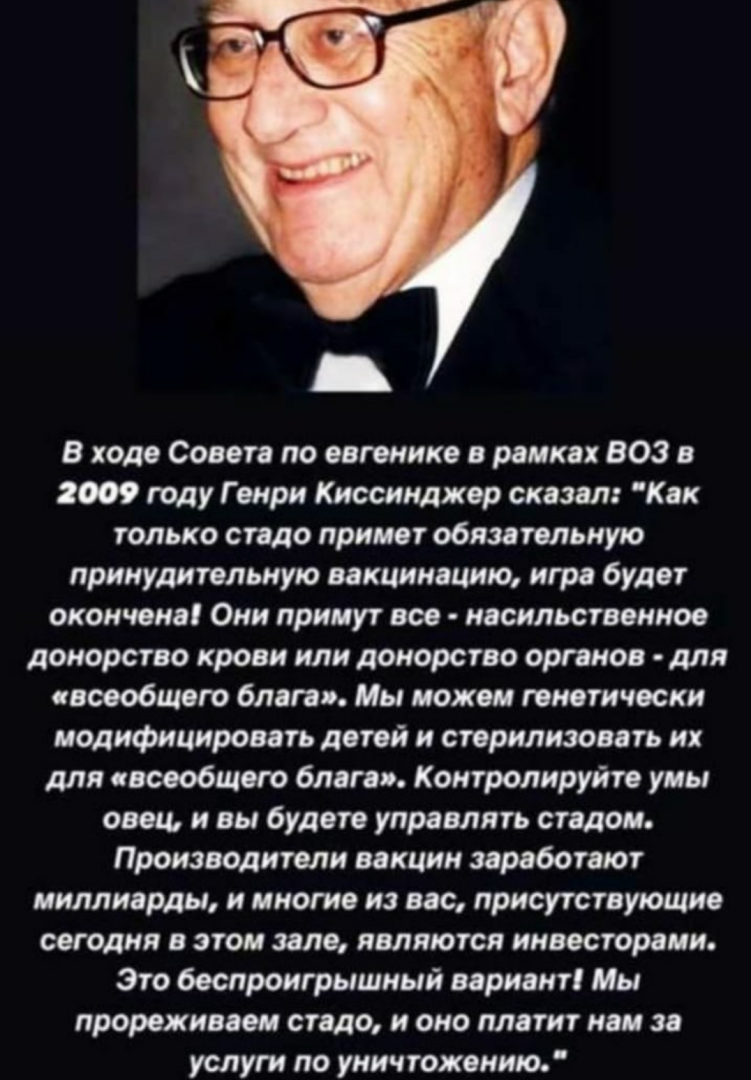 Алескандр, за комплимент про молодость спасибо, конечно. По поводу "расслабухи" по случаю субботы - это явно вы на своём примере. Не надо на других проецировать свои привычки. И лекции мне читать тоже не надо. Я родилась, выросла и выучилась тоже в СССР. Так вот, в той великой стране людей прививали вакцинами, над которыми работали УЧЁНЫЕ годами, тестировали на животных (да, я считаю, что это безнравственно, но что поделать) и на добровольцах, которые шли на это по убеждению. А ещё врачи брали на себя отвкетственность за эти исследования. Не поняла, причём тут вич-инфицированные - от вич вакцины не существует. Зато это заболевание из статуса смертельного перешло в статус хронического. И люди сейчас живут с ним очень долго, без перехода в спид, главное - соблюдать рекомендации врачей. Прививки якобы от рака шейки матки приводят к бесплодию. Особенно широко это практиковалось в странах "третьего мира", где, как известно, рождаемость практически не контролируется. Если речь идёт про заботу о здоровьи, то начинают искать способы эффективного лечения и поддержания организма, а не колют всякую дрянь, слепленную "на коленке" за 2-3 месяца. Да ещё навязывают это людям всеми возможными способами. Вопросов у меня к вам нет и быть не может - не интересуют пустые разговоры. А по поводу пропаганды по СМИ - вот: