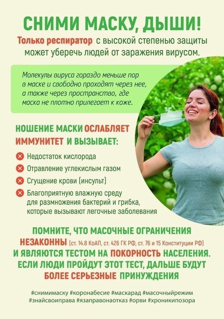 Несмотря на информацию госпожи Малышевой, власти продолжают внедрять масочный режим.