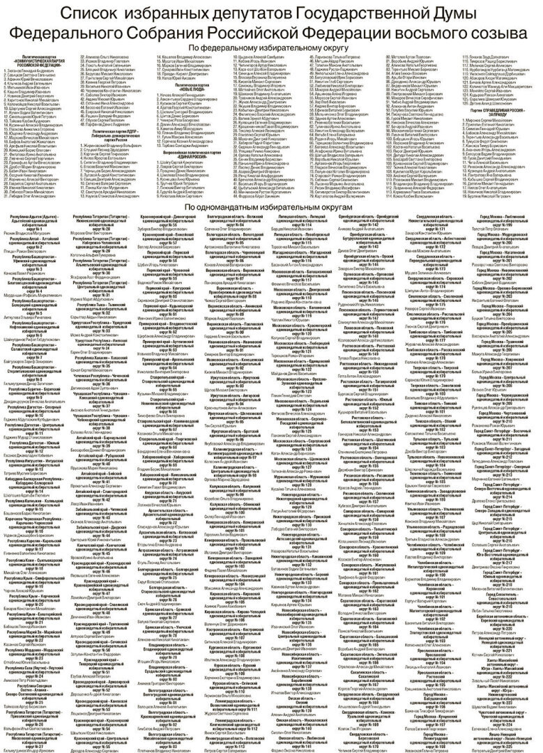 Список избранных депутатов Государственной Думы РФ восьмого созыва