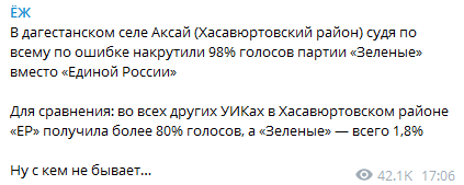ЕР даже в тройку лидеров не вошла, 10% максимальное количество голосов. В общем это скорее всего последняя пятилетка, нас разденут до гола, кого-то уничтожат, остальные будут пахать за корку хлеба. Через пять лет узнаем, кому нас продали.