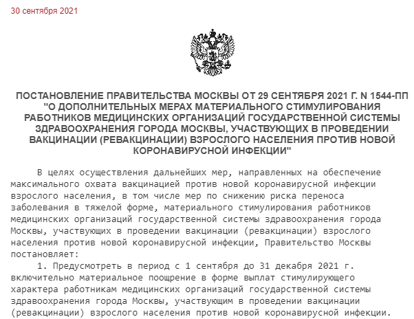 И чтобы максимально и в сжатые сроки уменьшить количество отказников от благодетельных вакцин, теперь в столице нашей Родины, городе-герое Москве установлена специальная поощрительная надбавка для медицинского работника, если он сможет превысить план по вакцинации, то есть убедить противника прививки-Фому не верующего нового толка - сделать спасительный укол.