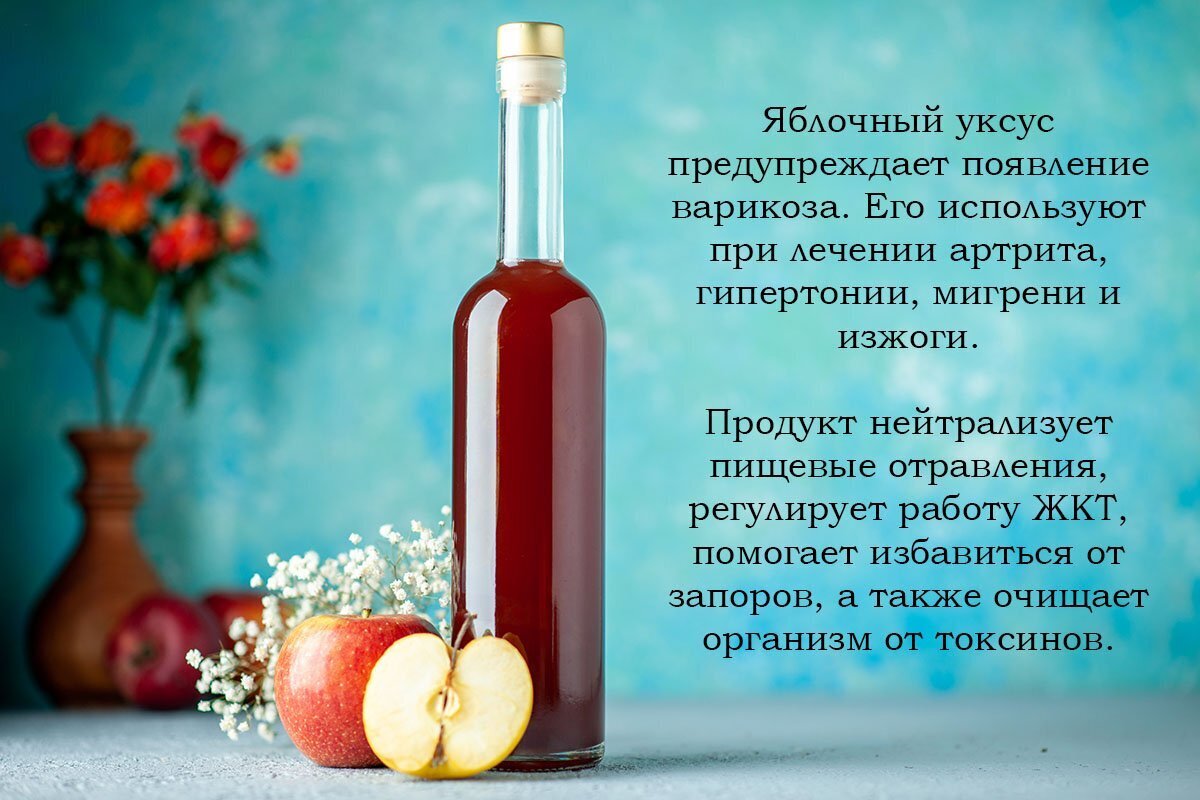 Натуральный яблочный уксус — это не просто продукт, благодаря которому можно улучшить вкус блюд. Испокон веков его использовали в лечебных целях. Причем спектр целебного воздействия уксуса на организм очень широк. Редакция «Так Просто!» уже подготовила для тебя подробный разбор каждого из полезных свойств яблочного уксуса. Скорее ознакомься с ними!
