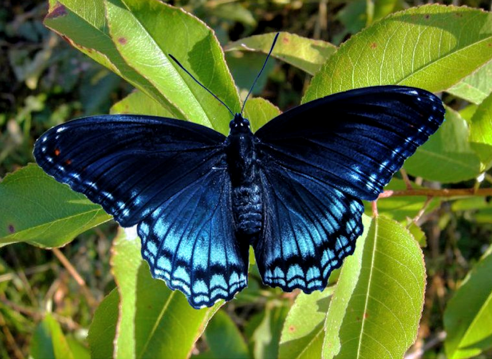 (Limenitis arthemis astyanax) Эта бабочка нашла себе приют в лесах Северной Америки. Названа она так из-за красных точек, расположенных на периферии ее верхних крыльев, хотя в окраске преобладает голубой цвет. Великолепие красно-пятнистого фиолетового Адмирала не могло остаться незамеченным, поэтому он был включен в список самых красивых бабочек в мире.