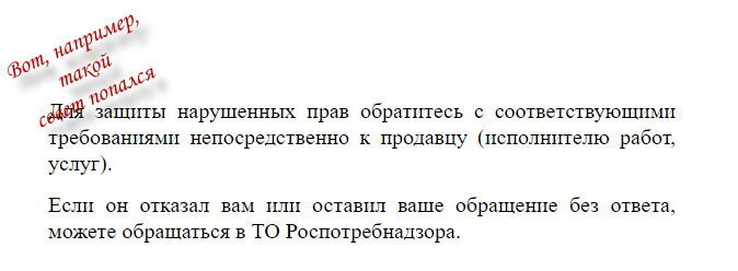 1. Если Вы не планируете обращаться в суд, то претензию (жалобу) продавцу (исполнителю) предварительно направлять НЕ ОБЯЗАТЕЛЬНО. Видел советы о том, что прежде нужно направить обращение сначала продавцу, и если он не ответил или отказал, только тогда направить жалобу в Роспотребнадзор. На самом деле законодательство не содержит никаких требований для предварительного направления обращения продавцу, можно сразу после обнаружения нарушений направить жалобу в Роспотребнадзор.