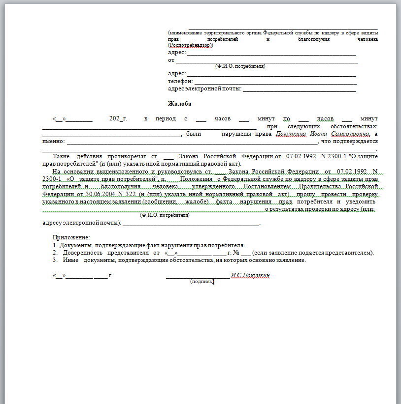 Образец жалобы.