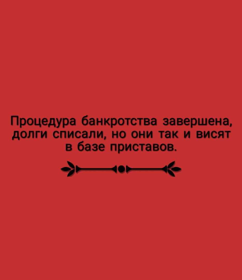 Процедура банкротства завершена, долги списали, но они так и висят в базе приставов.