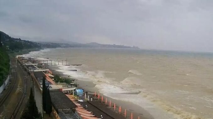 При этом допускается, что уровень воды в реках может подняться, а кроме того, возможны смерчи на участке Магри — Веселое. Синоптики прогнозируют усиления ветра, скорость которого составит 15–17 м/с. На курорте уже идет сильный дождь, пасмурно, температура воздуха не превышает +18 градусов тепла.