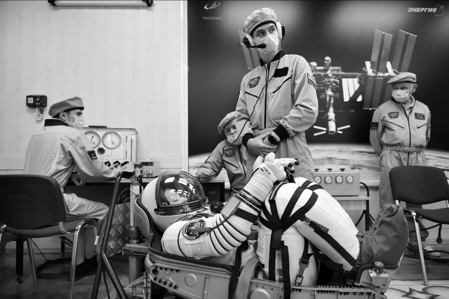 Для тренировок был доработан комплексный тренажер корабля в Центре подготовки космонавтов, переписана бортовая документация. Часть операций возложена на Пересильд и Шипенко. Как пояснил командир, возле Юлии находится клапан подачи кислорода в спускаемый аппарат, а слева от Клима - клапан подачи кислорода в скафандры, а также заслонки воздушной вентиляции.