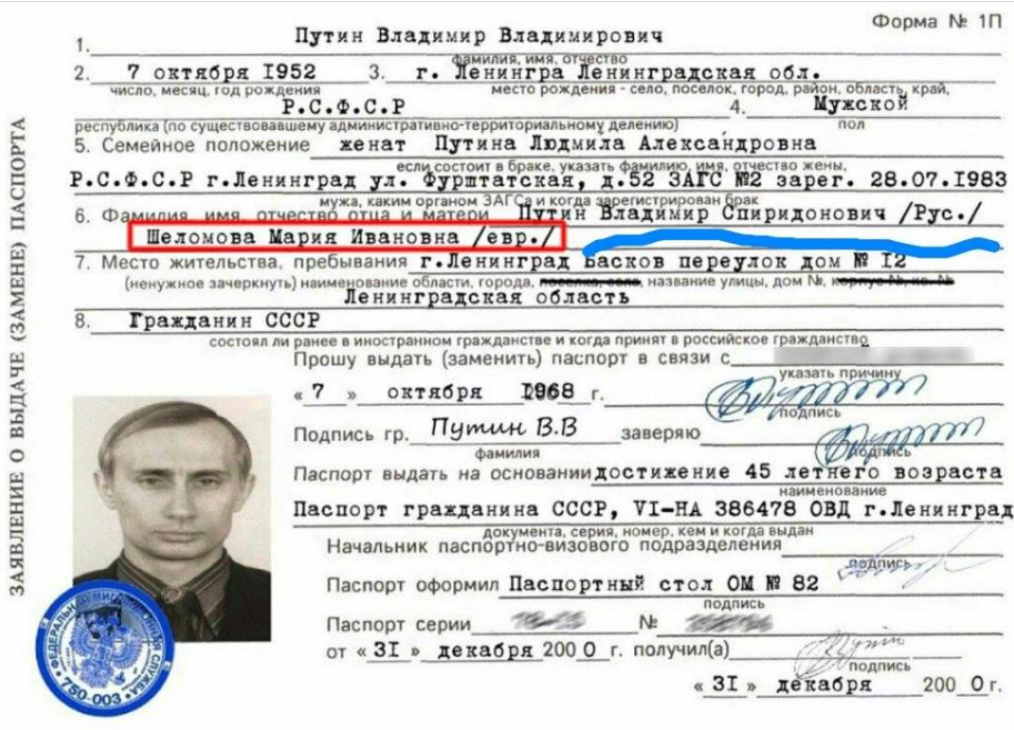 Интересно,а кто заполнял эту форму №1П? В Ленинградской области есть город Ленингра,в котором родился ВВП?. Я думала,что город Ленинград...