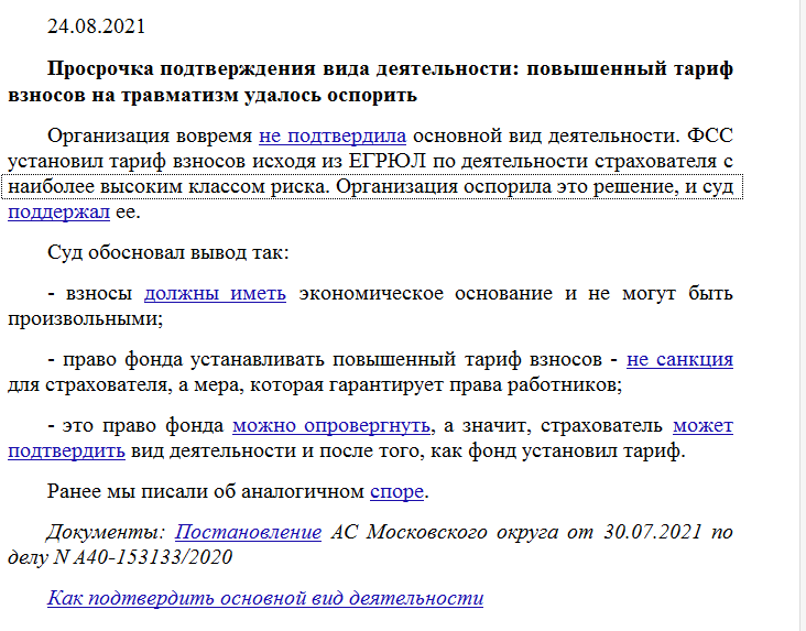 Просрочка подтверждения вида деятельности: повышенный тариф взносов на травматизм удалось оспорить.