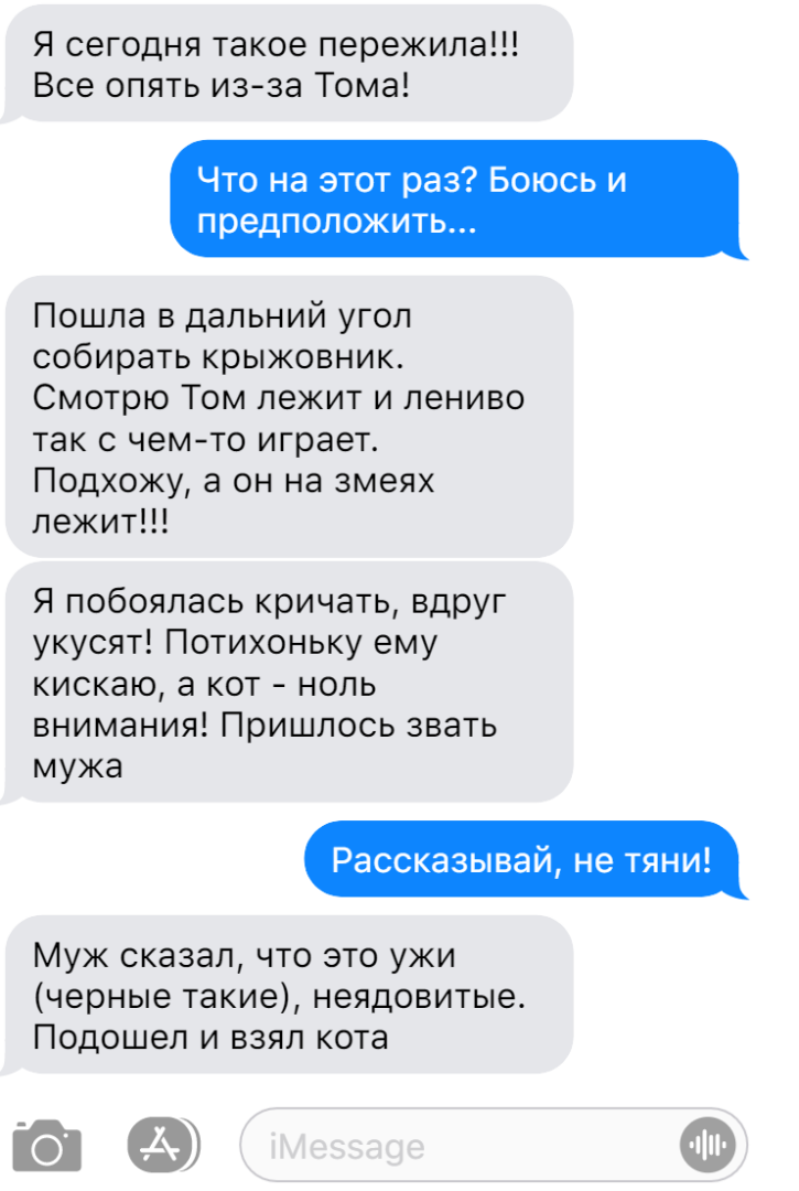 Сегодня хочу показать Вам переписки об абсолютно бесстрашных котах. Любители кошачьих подтвердят, что такие действительно существуют.