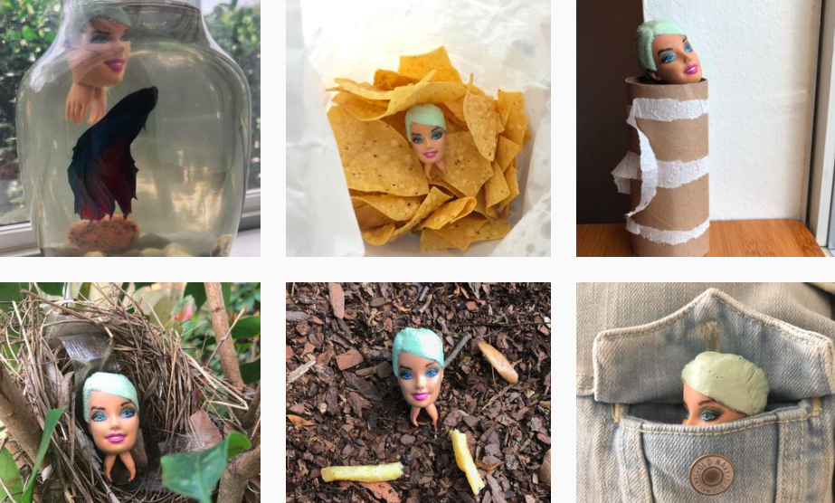 Еще более удивительный аккаунт посвящен тому, чтобы рассказывать о приключениях головы куклы Барби, отрезанной от всей остальной куклы Барби. В это трудно поверить, но на аккаунт подписано почти двадцать тысяч человек, которые ежедневно следят за приключениями этой самой головы – им интересно.