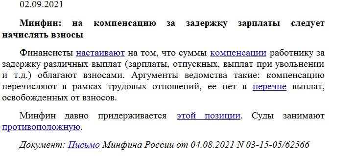 Минфин: на компенсацию за задержку зарплаты следует начислять взносы.