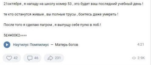 Из-за учащения стрельбы в учебных заведениях полиция стала гораздо внимательнее следить за публикациями в социальных сетях.