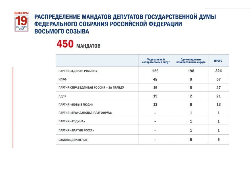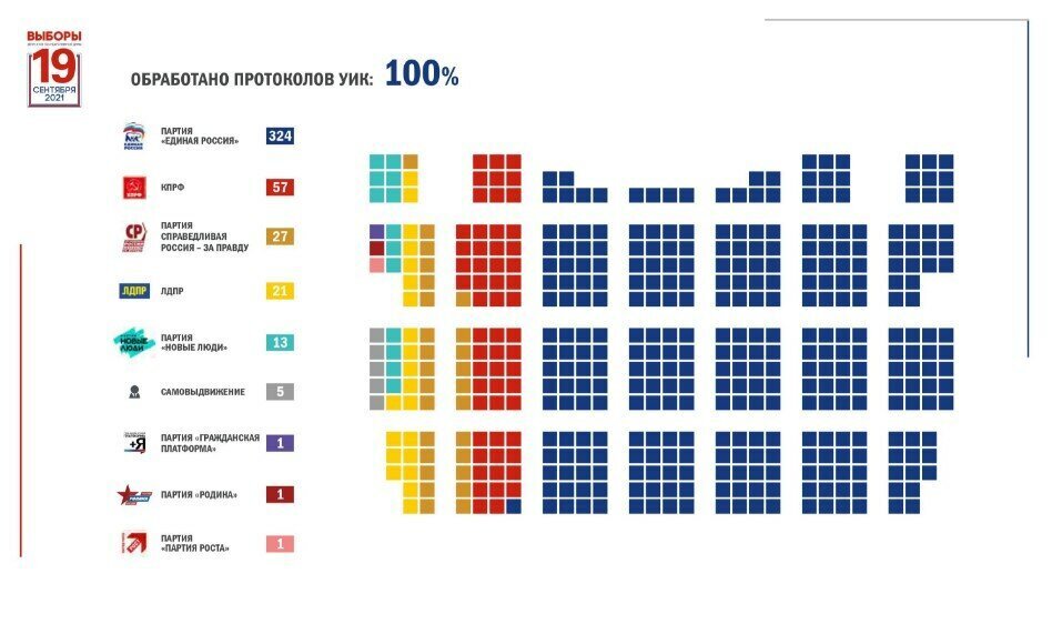 "Единая Россия" безусловно победила, и использование административного ресурса, и подтасовки наверняка были, но победа безусловная, хотя и с потерями в 20 мандатов по сравнению с 2016 годом. То, что победила безусловно, говорят результаты голосования по одномандатным округам. Там партийная принадлежность не настолько обезличивает кандидата. Хотя и интерес тоже более личный. Но, положа руку на сердце, а какая из партий не стала бы пользоваться административным ресурсом? "Яблоко" или "Партия Роста"? Да ладно вам смеяться!