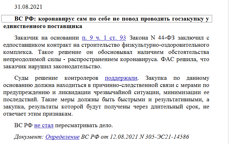 ВС РФ: коронавирус сам по себе не повод проводить госзакупку у единственного поставщика.
