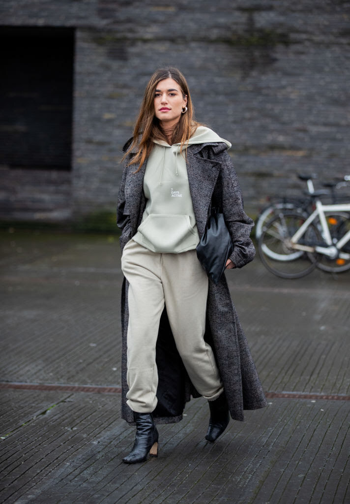 Комфортная одежда теперь с нами надолго. Поэтому комплект из серого худи и подходящих джоггеров станет отличным выбором для осенних выходных.